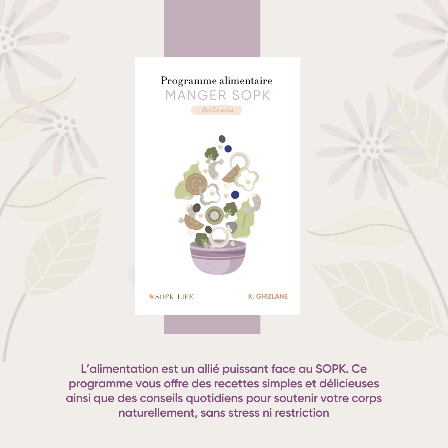 Destiné aux femmes atteintes du SOPK, cet ebook est un méga guide pour apprendre à manger sainement et mieux gérer les symptômes du syndrome des ovaires polykystiques grâce à un régime adapté.